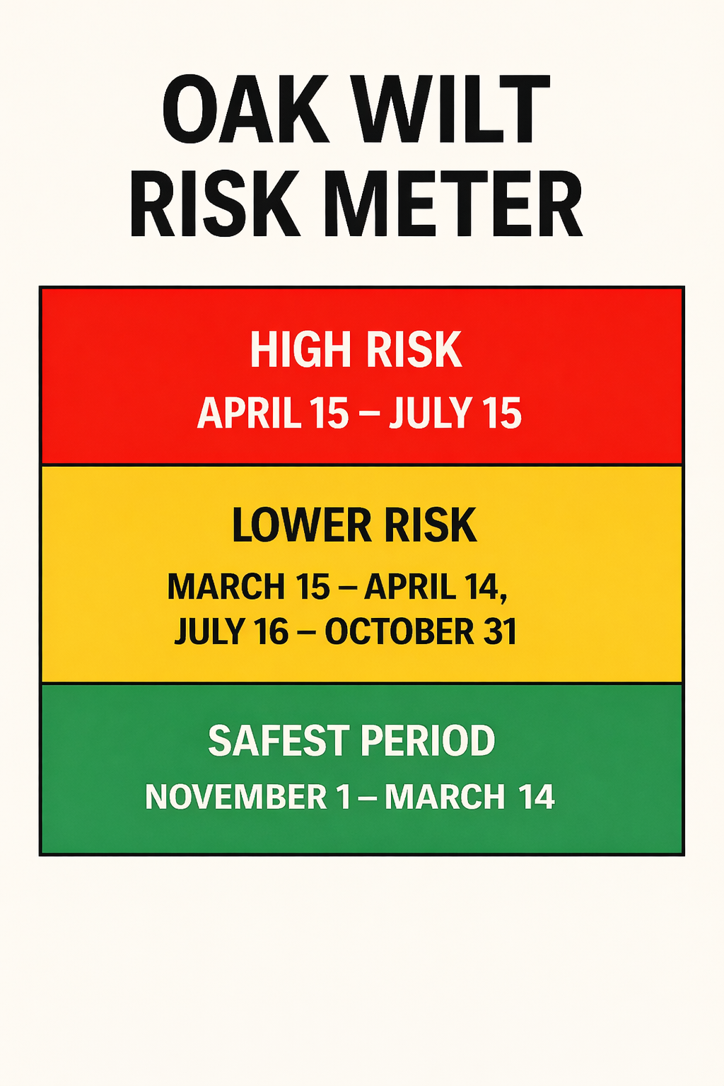 If you own oak trees, or if your work requires you to prune or harvest oak trees, you can prevent the spread of oak wilt by following certain basic precautions. For more information, click on your area of interest: TREE OWNERS UTILITIES MUNICIPALITIES ARBORIST AND LANDSCAPING FIRMS FORESTERS TIMBER HARVESTERS